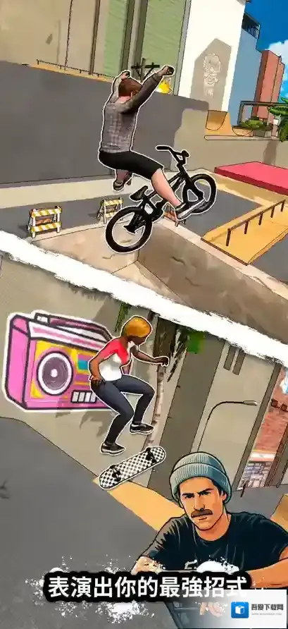 1、非常多的特技动作等你解锁,不同的特技运动大师等你去挑战。