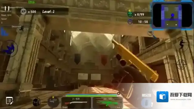 3、左手移动,右手开火,点击下方道具栏切换武器,右上角显示敌人位置。