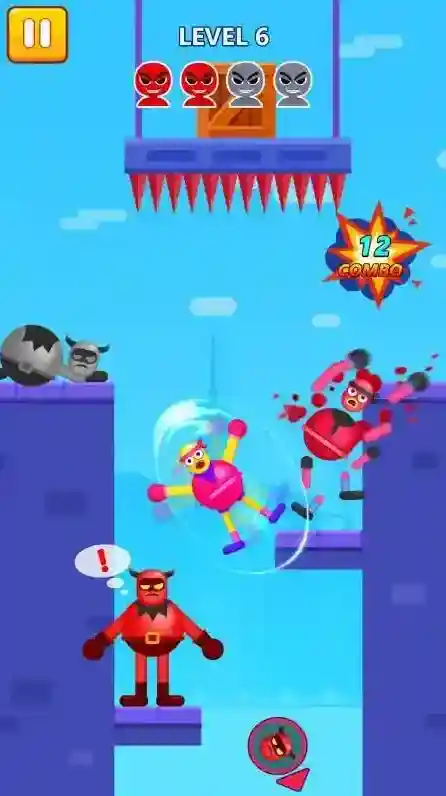 2、玩家通过滑动屏幕控制角色移动和攻击方向,利用角色的旋转攻击等技能,击败红色、灰色等敌人,同时避开危险机关。