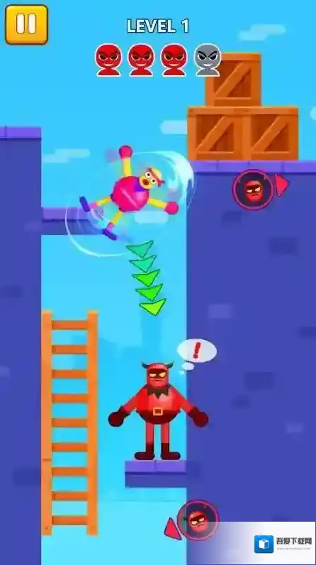 1、核心跳跃机制:通过触屏控制主角跳跃,点击屏幕左侧向左跳跃,右侧向右跳跃,长按屏幕可蓄力跳得更高更远,合理利用关卡中的弹射装置与反弹墙壁,规划最优路径。