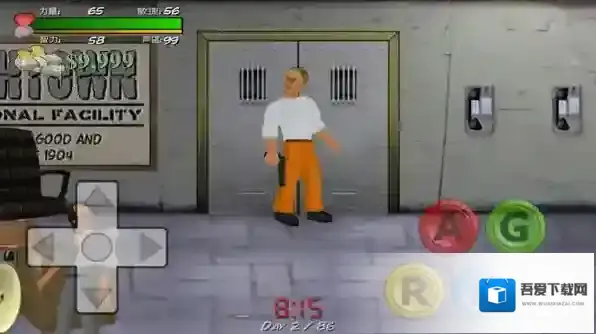 1、艰难时刻采用第三人称动作格斗设定,在监狱场景中,面对典狱长与守卫的监管,简洁画面在展现监狱环境时,有效突出核心玩法元素,强化游戏氛围。