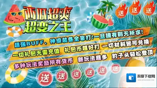 西瓜超爽超变之王,195神器超变版本,上线直接免费获得群体切割、自动回收等超爽功能!本服没有卡点、秒下大陆,无秒杀BUFE,属性平衡,散人也可超神,花时间直接变大哥!游戏内所有的货币全部可以通过打怪获得,一切货币材料刷到爆!亿万切割、亿万血量、亿万攻击、千倍爆率等超爽数值任你体验,人人皆可超神!