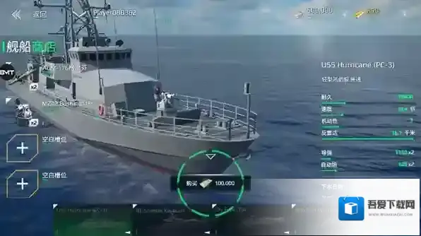 1、进入游戏,点击购买,获得初始船巡逻舰一艘