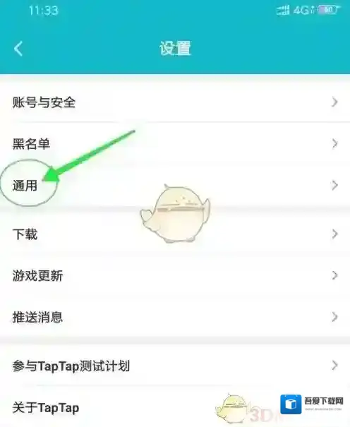 3、进入TapTap设置页面,点击打开“通用”;