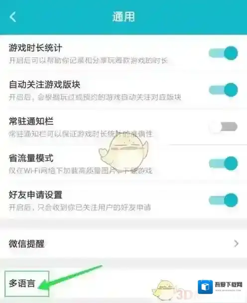 4、进入TapTap通用页面,点击“多语言”功能;