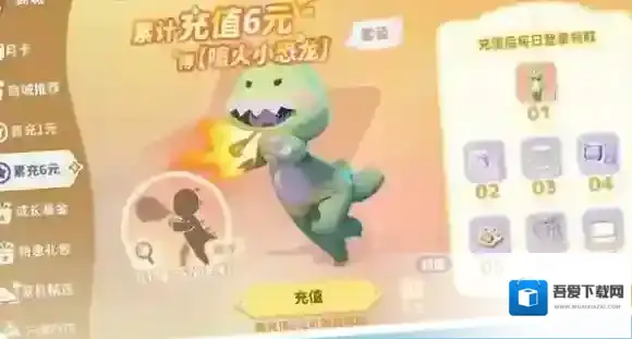 2、累计充值6元,立得喷火小恐龙套装+专属喷火动作。