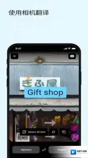 将你的相机对准你要翻译的文本。框内的文本将被插入源文本字段,并立即被翻译成你选择的语言。