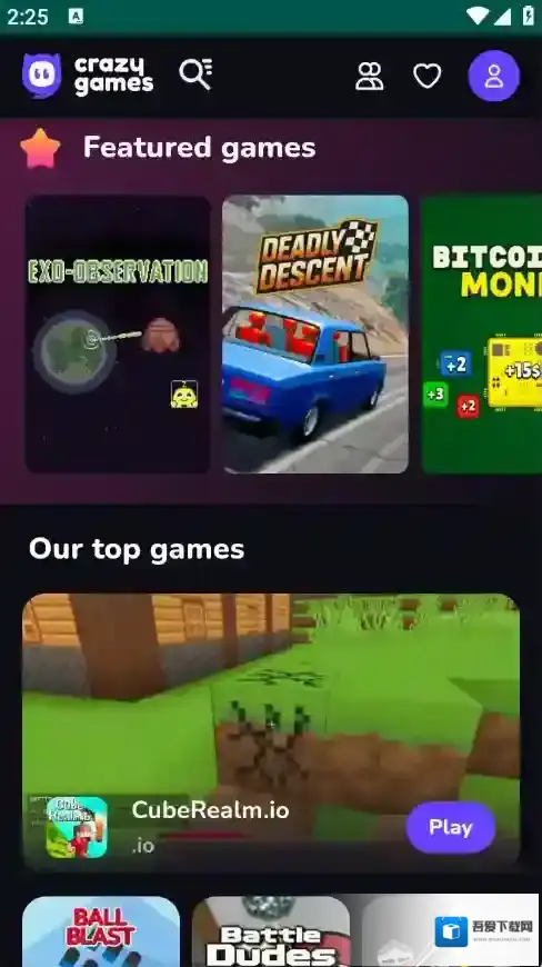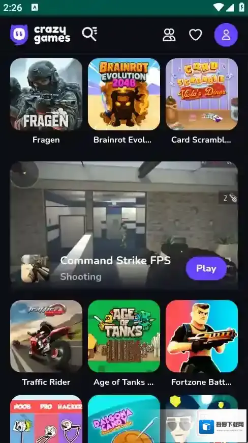 crazygames,免费畅玩各种游戏,涵盖了国内外优质的游戏资源,所有的游戏不需要单独下载,直接点开就可以畅玩,另外游戏都有详细的分类,帮助玩家可以快速上手,还可以与玩家分享心得,随时随地畅玩游戏。