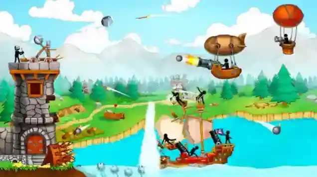 弹射海盗,以火柴人为主角的休闲闯关类手游。游戏中,我们将会控制自己的火柴人士兵守卫城堡,面对不断来袭的海盗船、飞艇等敌人,通过投掷城堡上的投石器去攻击敌人,击败所有敌人即可过关获得奖励。通过不断的闯关来积累资源,解锁更多新的道具,帮助你去战胜更多不同类型的敌人!除此之外,游戏内还有各种火柴人、炸弹、技能等元素可以使用,帮助你在关卡中大杀四方,闯过更多的关卡!