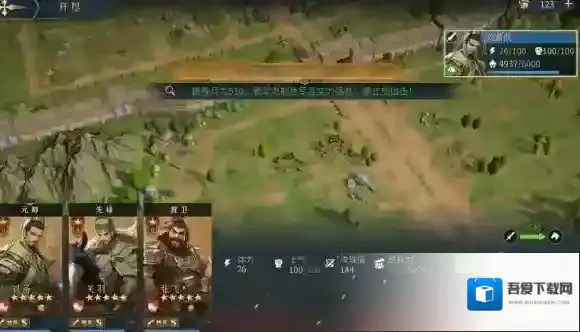 2、使用刘备、张飞、关羽的桃园组合组队,切记不使用等级互换,否则亏体力。