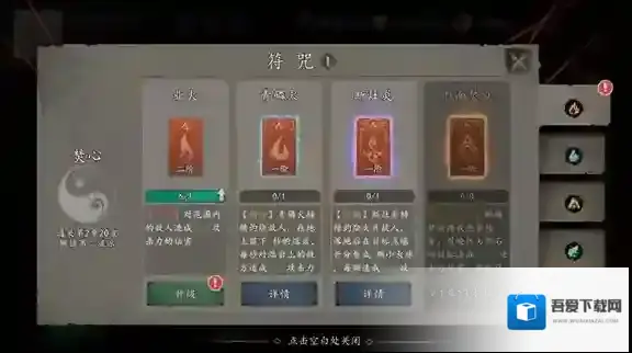 3、在关卡里右下角会自动生成各种属性的符咒让你使用,每次获得的符咒品质都是不同的。