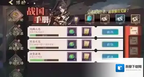 完成战国任务,即可赢取玉币、招募令、经验战策等丰厚奖励,更有金色品质的螳螂捕蝉战策,提供超高暴击率加成。