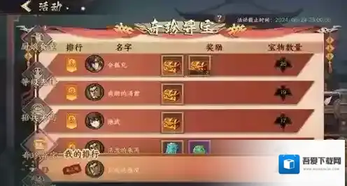 6月11日0点,将根据宝物数量结算排行奖励,玩家可赢取橙将自选箱、补天石等排行奖励。