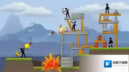 2、松手后即可将炮弹发射,击中塔楼或者敌人即可爆炸。