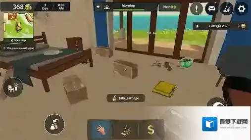 3、来到房间后,第一任务就是开始清洁房屋,点击垃圾即可拾取。